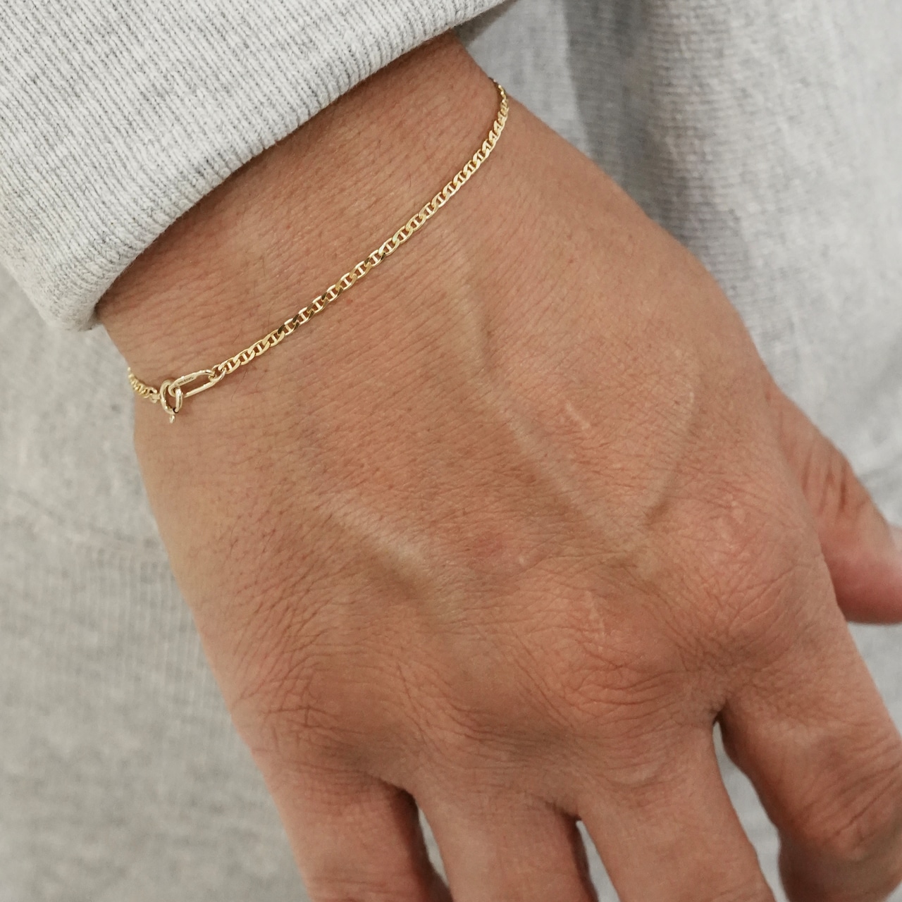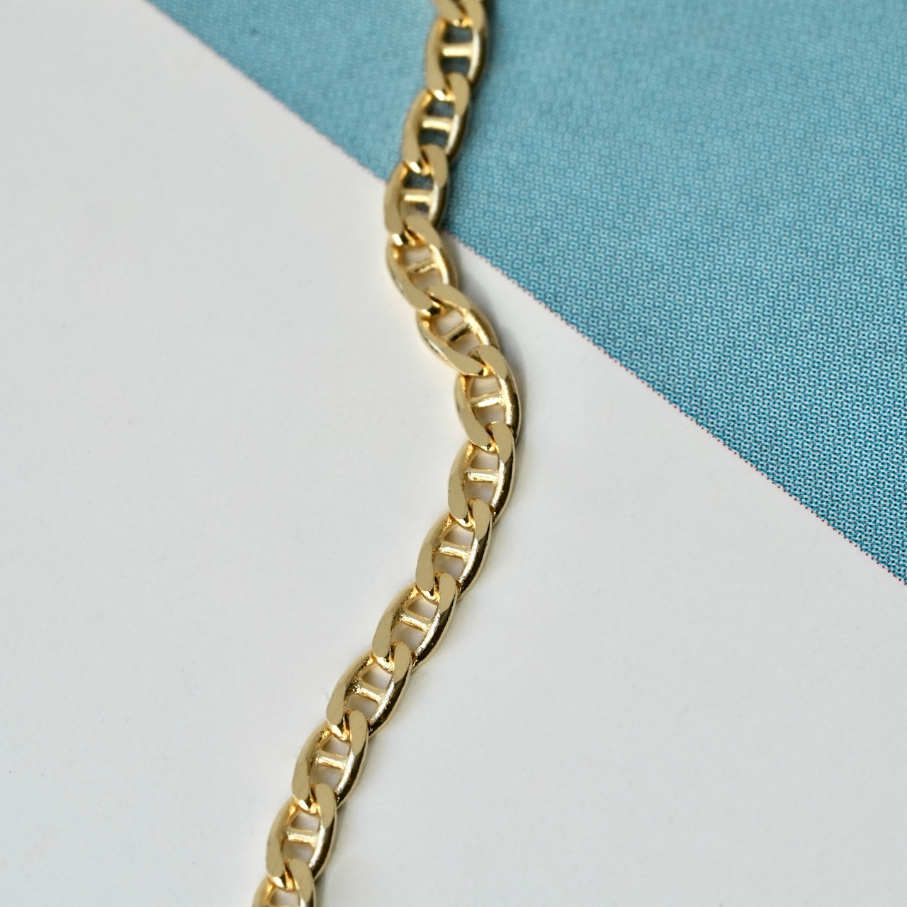 『ニューヨークから直輸入の14金イエローゴールド』ニューヨーカーに愛される14金人気チェーンになります。 船の錨(いかり)チェーンからインスパイアされたマリーナチェーンは、各コマが楕円形で、中央にバー(横棒)が入った独特の形状をしクラシックで洗練された外観シンプルでありながらエレガントで、男女問わず着用できるユニセックスなデザイン。 チェーンの幅やコマのサイズ感がとても可愛いです。