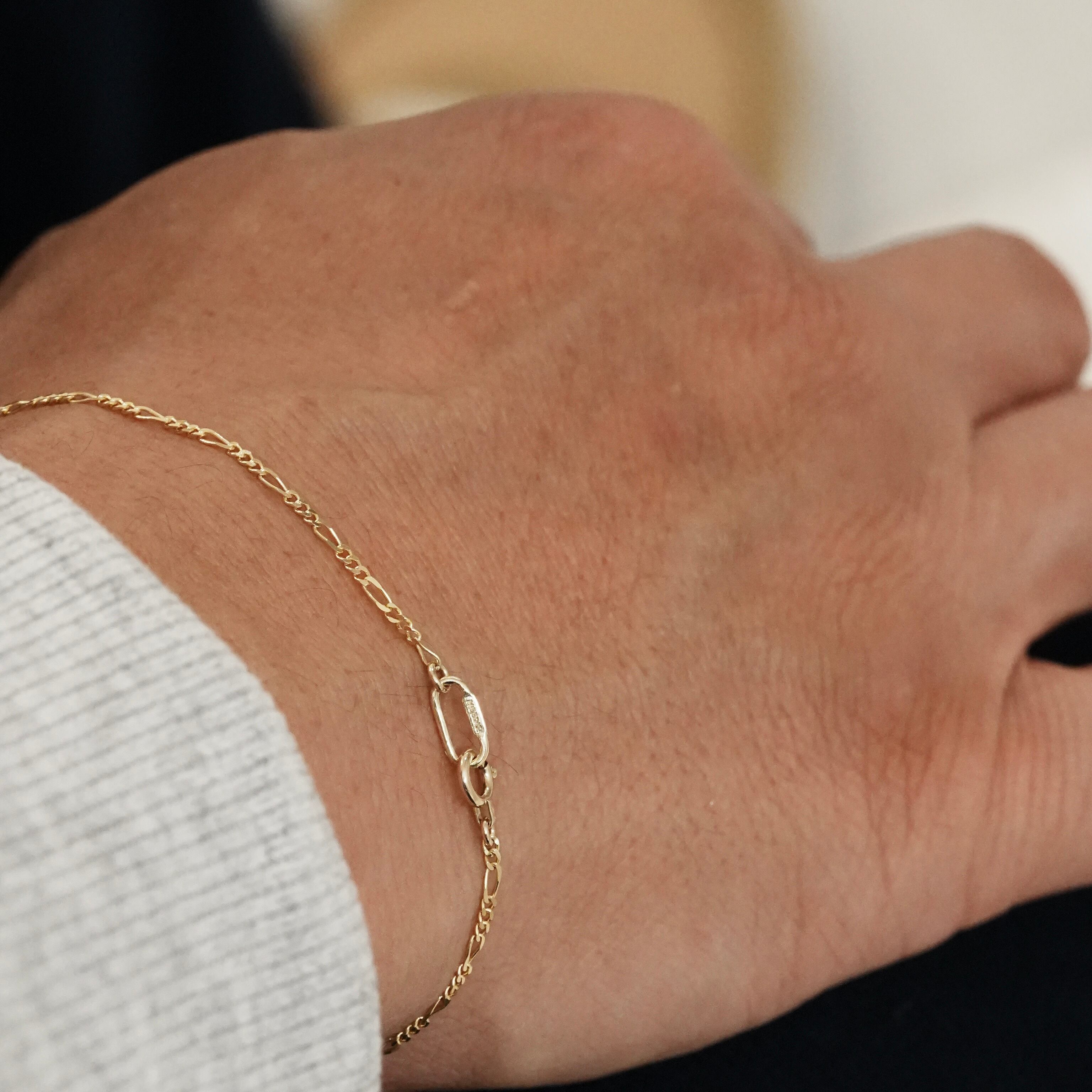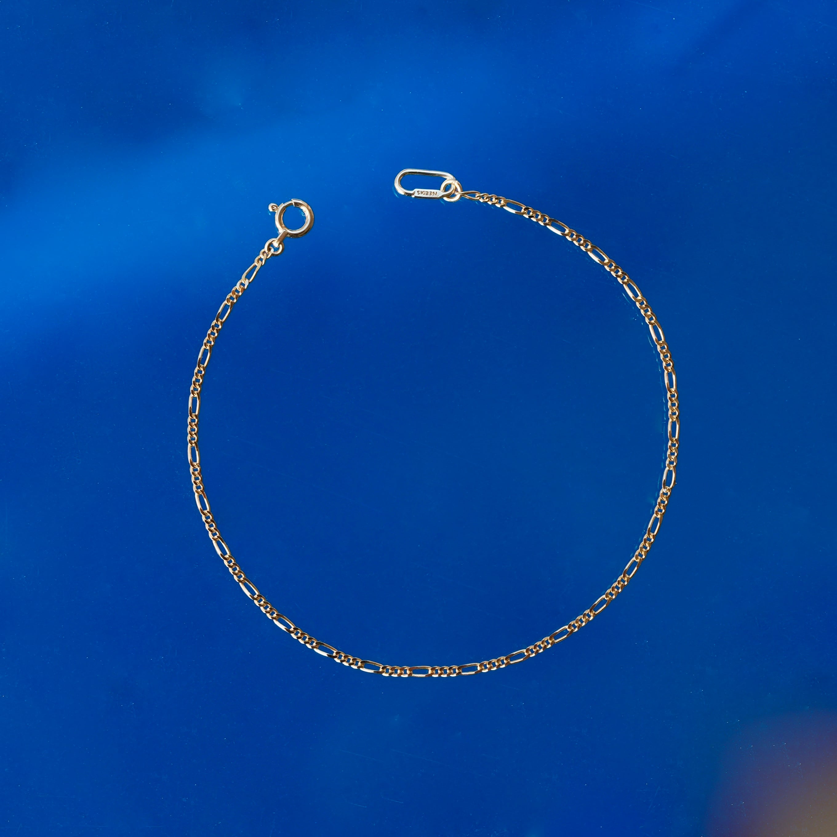 フィガロチェーンとは、大きさや形が異なる輪を交互に連結したチェーン。あずきチェーンや喜平チェーンと異なり、異なる輪のデザインがアクセントとなり、洗練された印象を与えます。